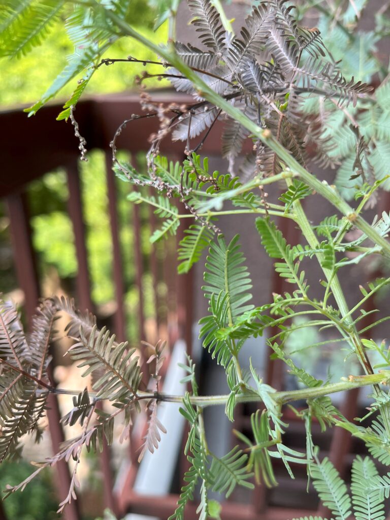 私が30cmほどの小さなポット苗から育て始めた時、ミモザは驚くほどのスピードで背丈が伸びていきました。