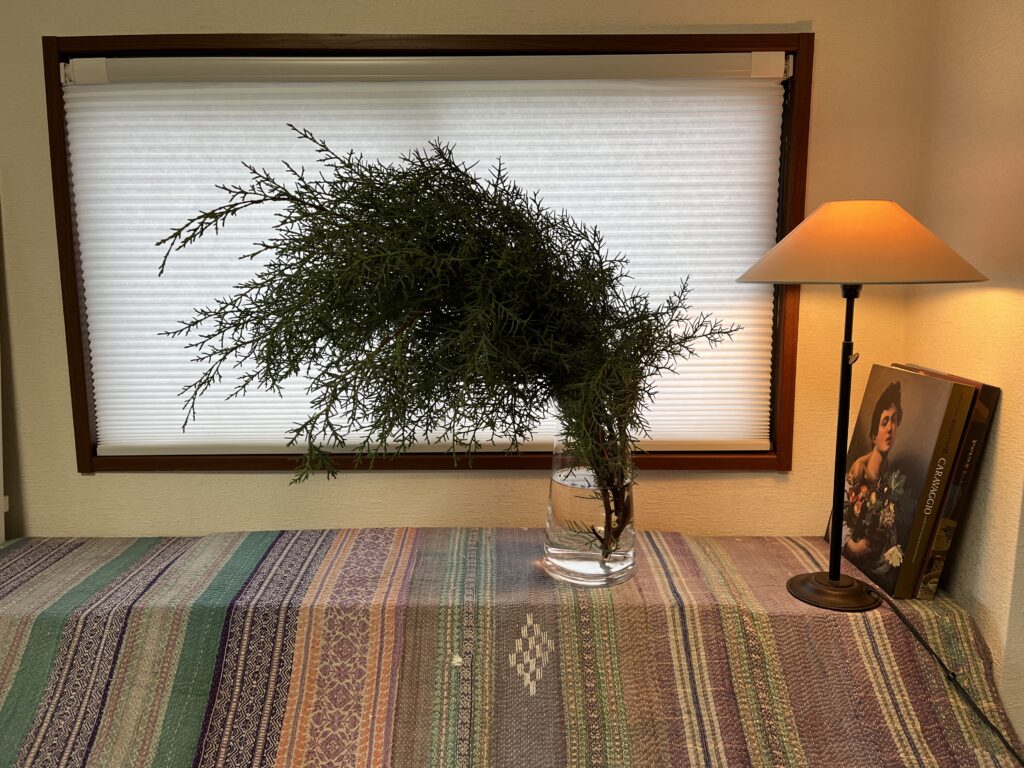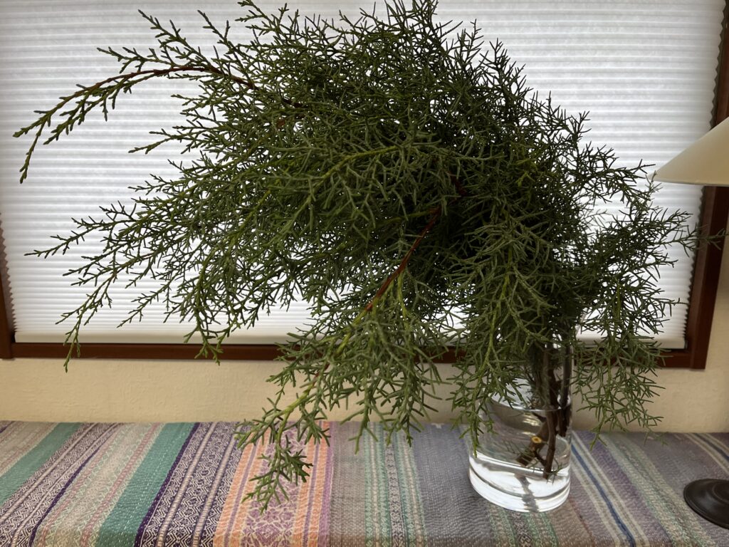 「クリスマスのために飾る」というより、冬を迎える準備として自然に置ける枝物です。
